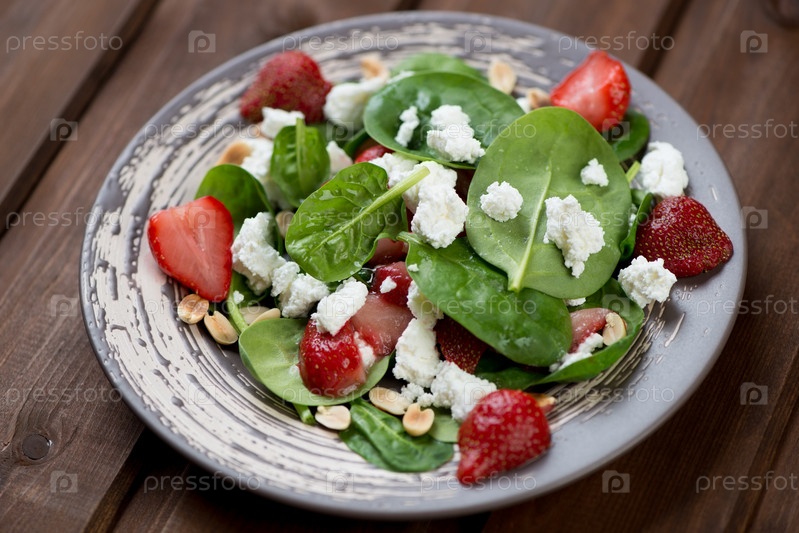 Салат с клубникой, шпинатом и сыром