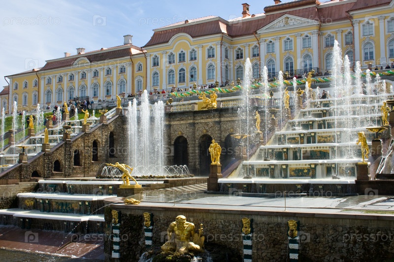 Каскад фонтанов Петергофа. Санкт-Петербург. Россия