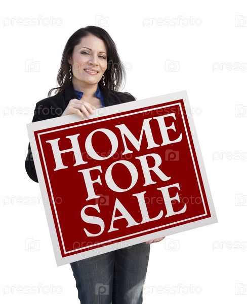 Девушки держит объявление о продаже дома