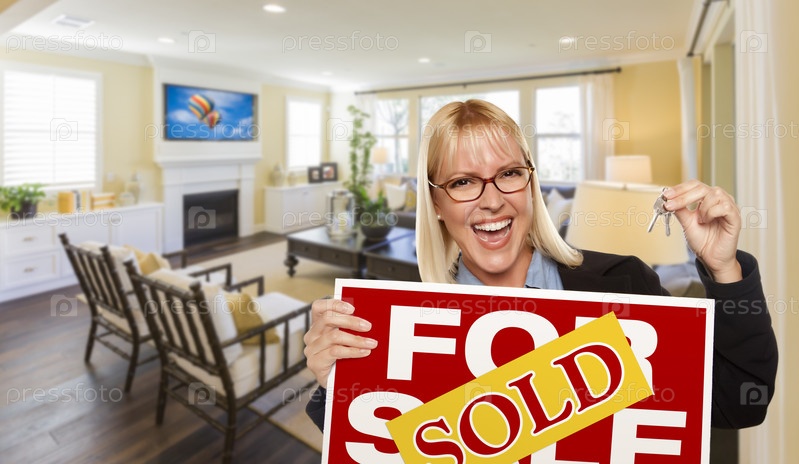 Девушки держит объявление о продаже дома