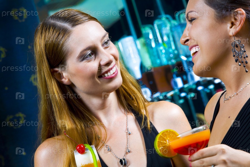 Портрет двух привлекательных женщина в баре