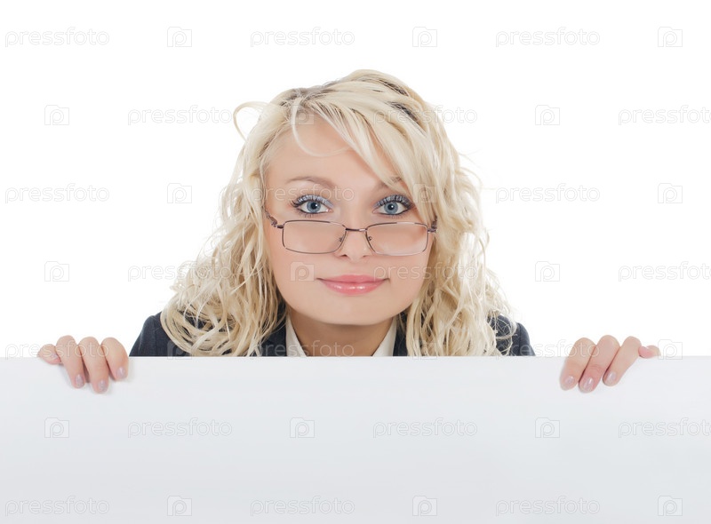 Портрет молодой женщины, держащей пустой рекламный щит