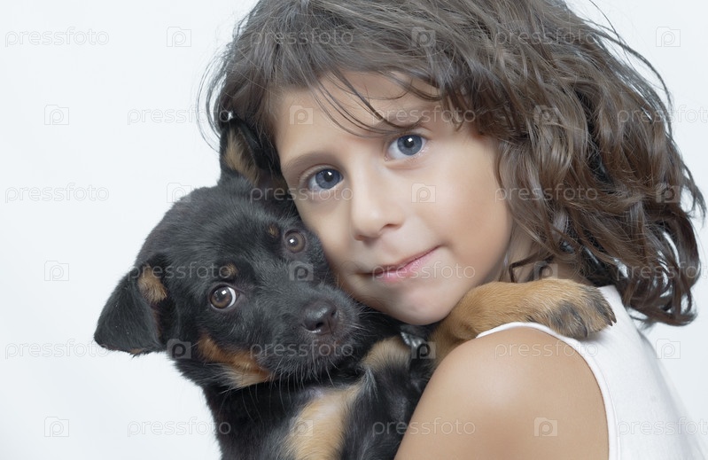 Портрет маленькой девочки со щенком