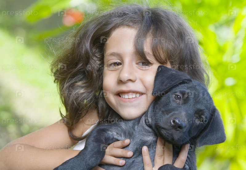 Портрет маленькой девочки со щенком