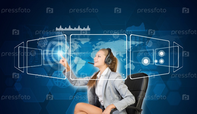 Бизнес-леди использует сенсорный экран