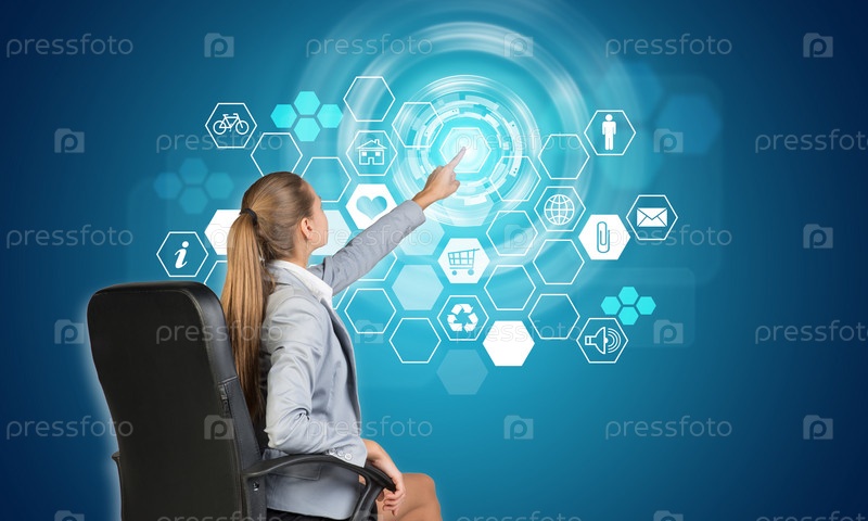Бизнес-леди использует сенсорный экран