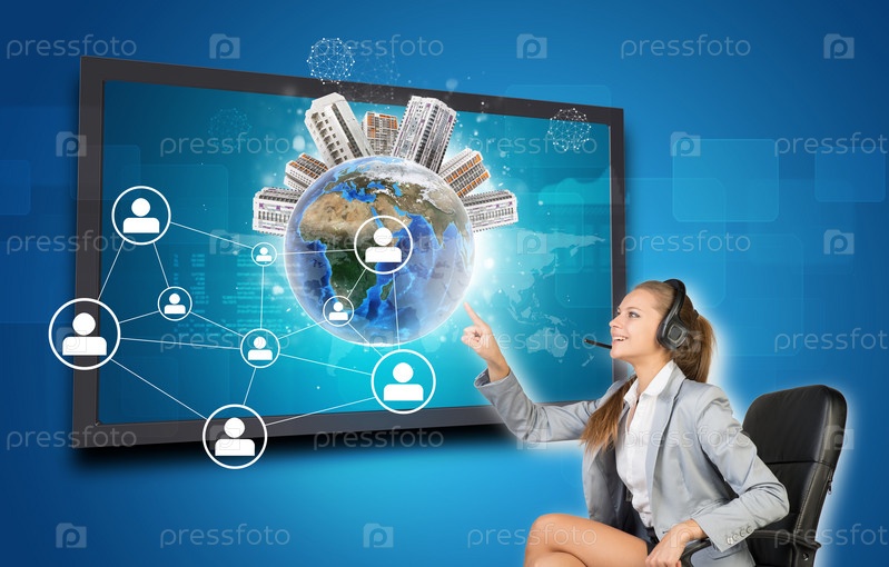 Бизнес-леди использует интерфейс сенсорного экрана
