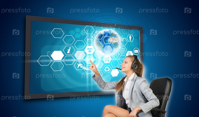Бизнес-леди использует интерфейс сенсорного экрана