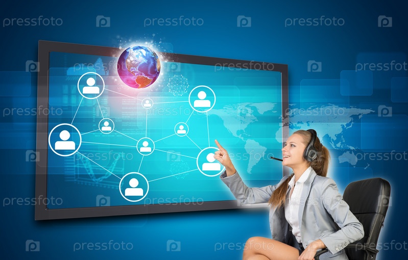 Бизнес-леди использует интерфейс сенсорного экрана