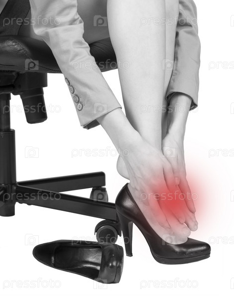 Бизнес-леди массирует больную ногу