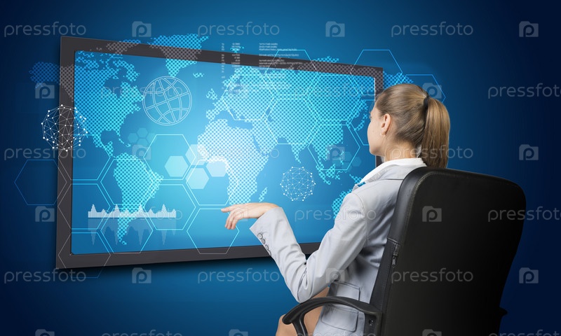 Бизнес-леди использует интерфейс сенсорного экрана