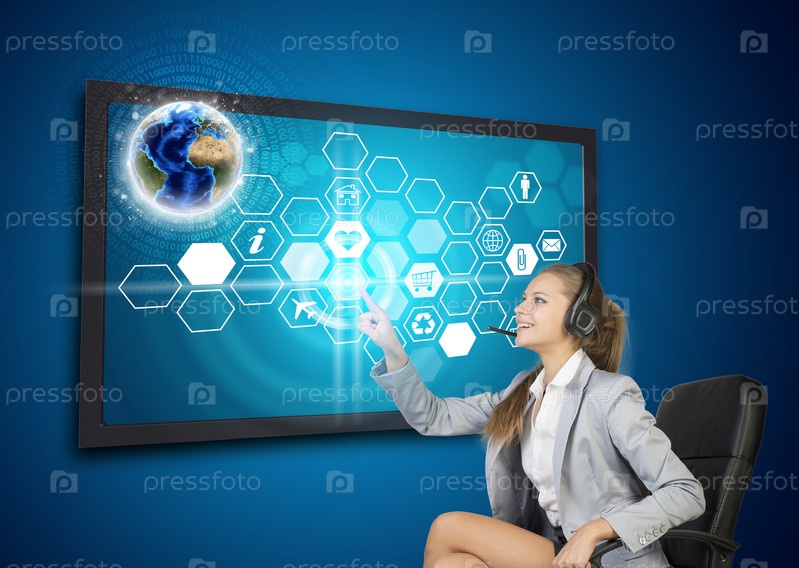 Бизнес-леди использует интерфейс сенсорного экрана