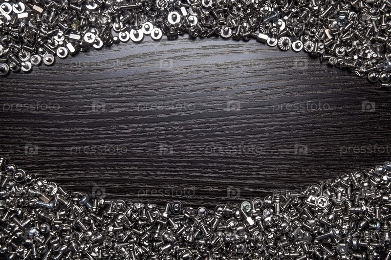 Винты и шурупы на деревянном фоне