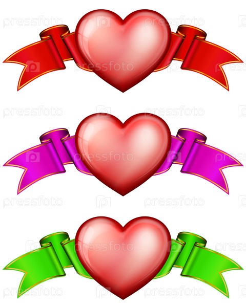 Коллекция сердец с лентой