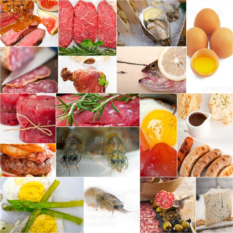 Коллаж из пищи с высоким содержанием белка