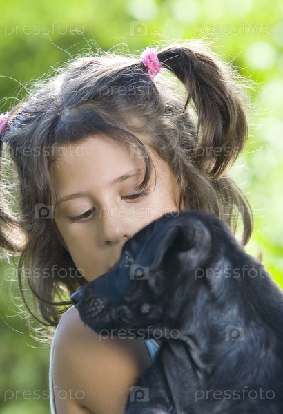Портрет маленькой девочки со щенком