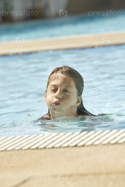 Девочка плавает в бассейне