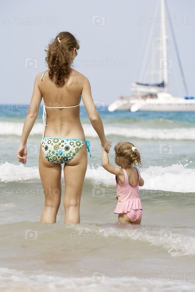 Женщина с дочерью на пляже