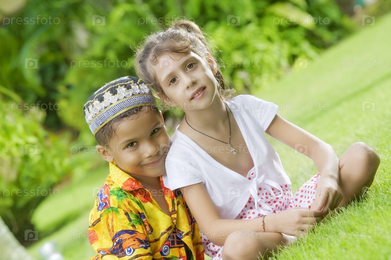 Портрет маленьких детей на поляне