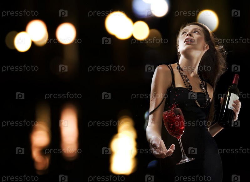 Портрет молодой красивой женщины с бокалом вина