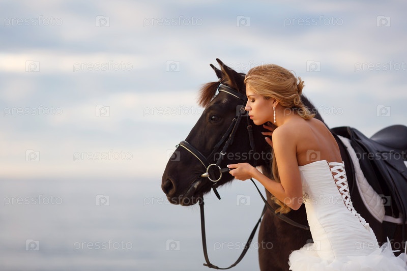 Невеста с лошадью на берегу моря