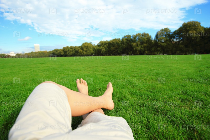 Босая женщина на поляне