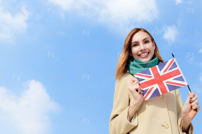 Молодая женщина с британским флагом