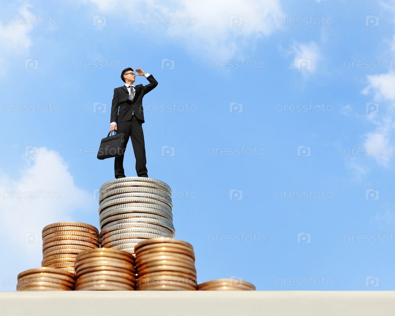 Бизнесмен на стопке монет