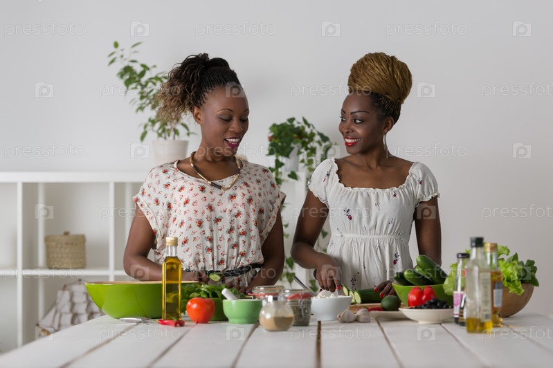 Женщины готовят салат