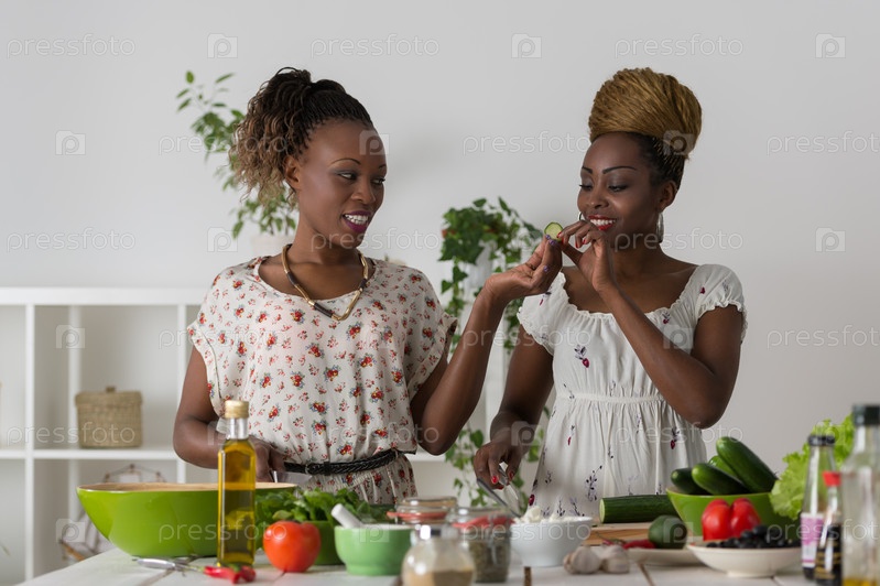 Женщины готовят салат