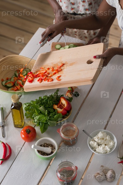Женщина готовит салат