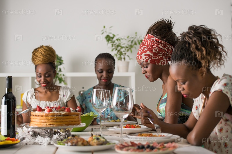 Женщины обедают за столом