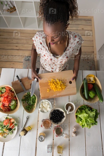 Женщина готовит салат