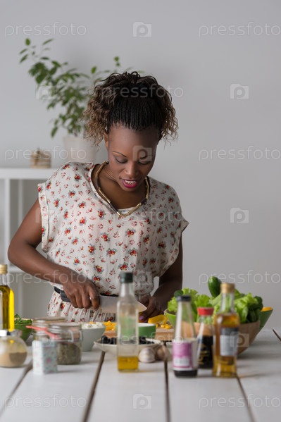 Женщина готовит салат