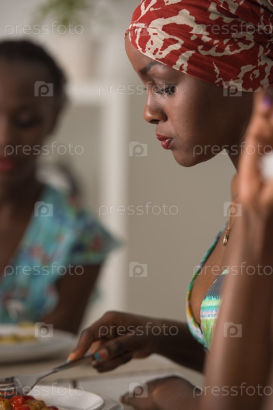 Молодые друзья обедают в доме