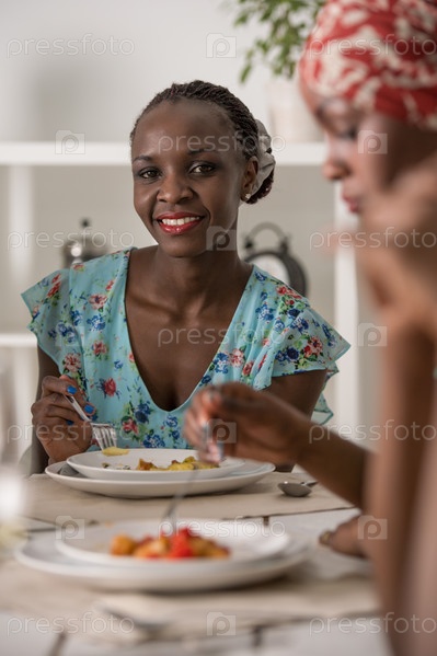 Молодые друзья обедают в доме