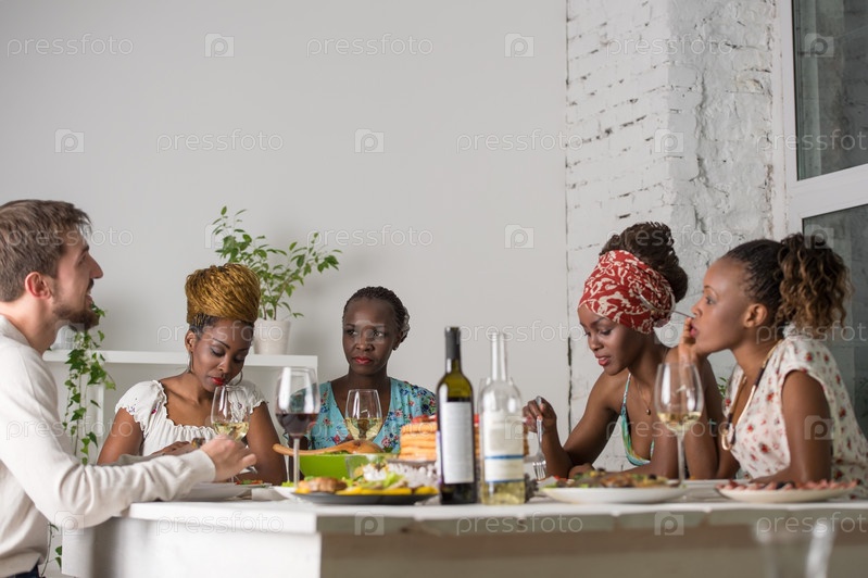 Молодые друзья обедают в доме