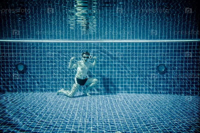 Мужчина под водой в бассейне