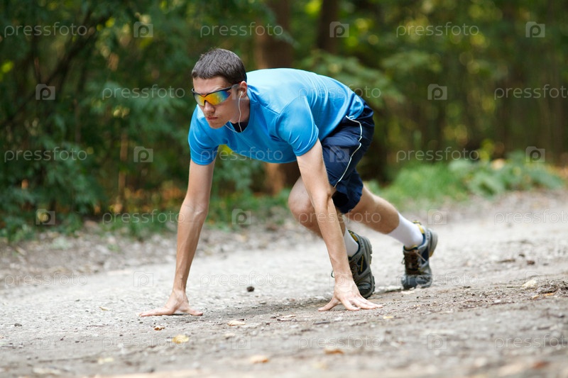Молодой бегун на старте в парке
