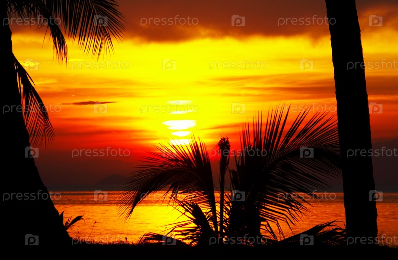 Тропический пляж на закате