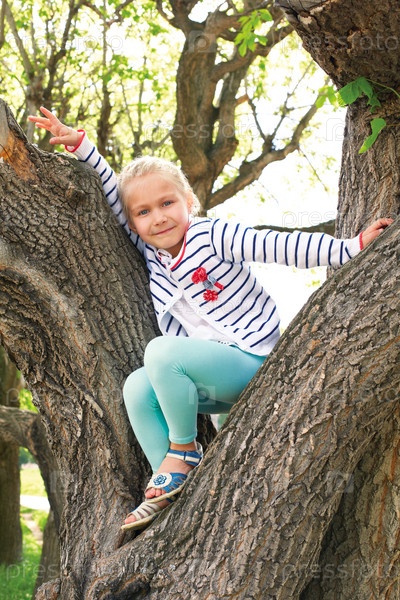 Девочка сидит на дереве