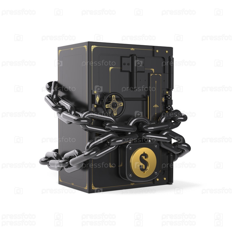 Сейф, закрытый на замок и обмотанный цепями