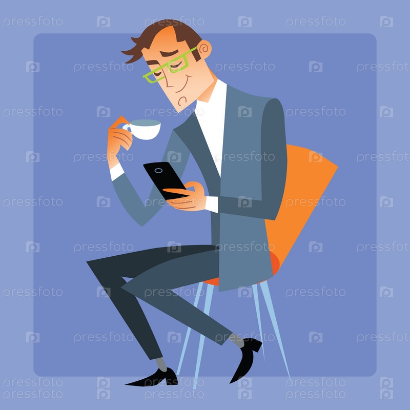 Бизнесмен читает сообщение на телефоне
