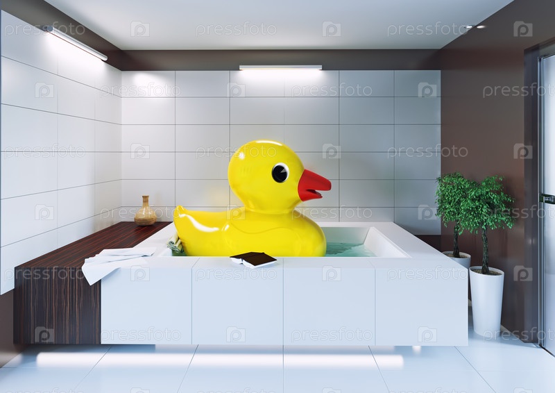 Большая резиновая утка в ванне