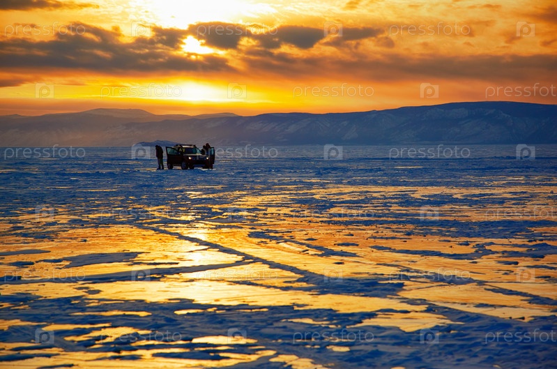 Зимний закат над озером Байкал