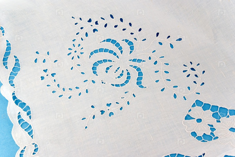 Вышитая салфетка на синем фоне