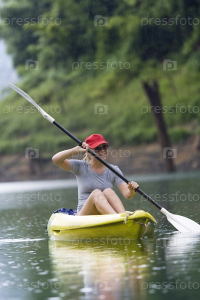 Женщина занимается греблей