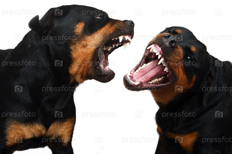 Два ротвейлера на белом фоне