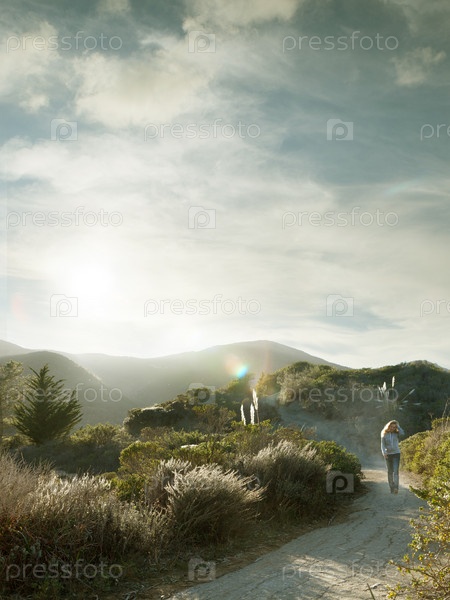 Женщина идет по дороге