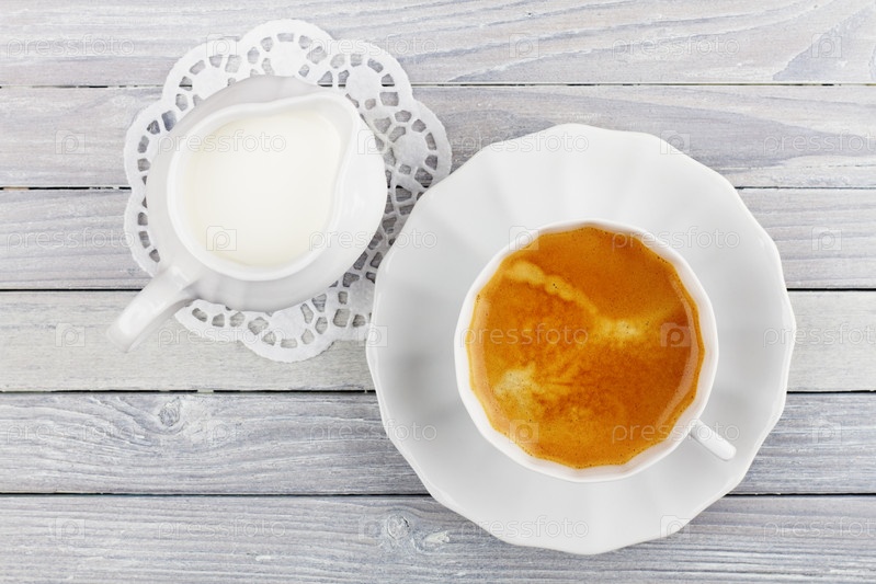 Кофе и сливки на деревянном столе